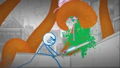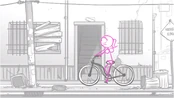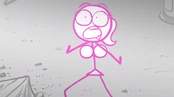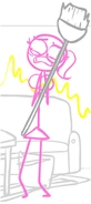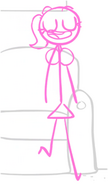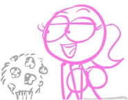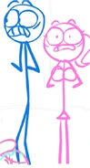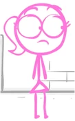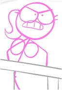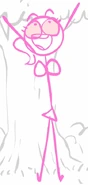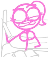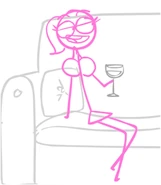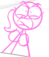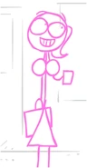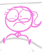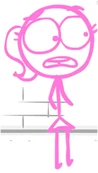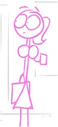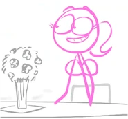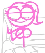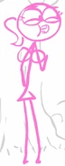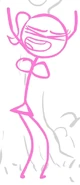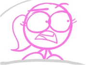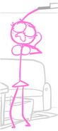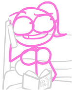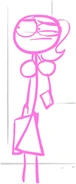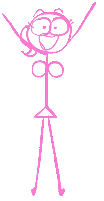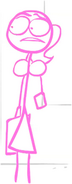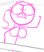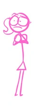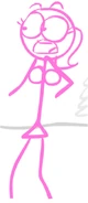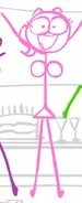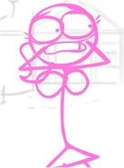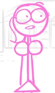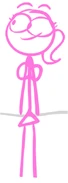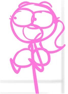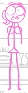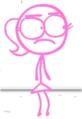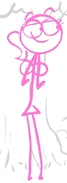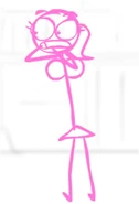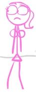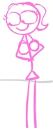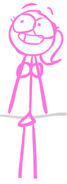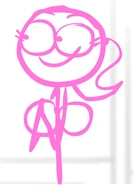 Pink is a pink female stick figure with two eyelashes on each eye. She wears her hair a ponytail. She also has breasts and a skirt.