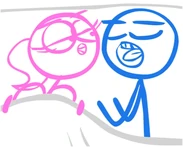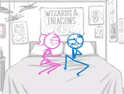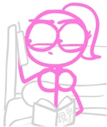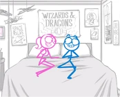 Pink is a very mature girl who often gets annoyed and stressed out about things mostly related to her relationship with Blue. She will usually start off on a date with Blue and she will be happy, but then something will happen. Either Blue will mess something up, or Red will come in and ruin everything and this will make Pink get mad and upset. Just like her boyfriend Blue, Pink may be suffering depression. Although Pink is usually very stressed and uptight in most situations, she is sometimes shown to he able to loosen up and have a little fun which mostly occurs when she is with her best friend Stacy. For instance: In the episode A Hobbit of Thrones, Pink was willing to play Dungeons and Dragons with Red, Blue, and Stacy. She and Stacy even both got high on pot and went insane, saying and doing random things for no reason.