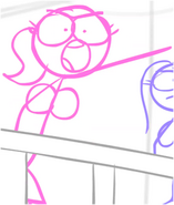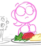 In Role Playas, she was playing as Pinkcess on top of a tower until she became angry at Cerulean (Blue's role playing name) for them playing for 4 hours, neglecting her, resulting in her departure.