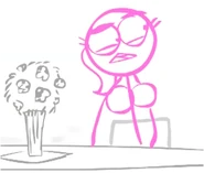 Meredith P. Gurblopskey, more commonly known as Pink, is one of the main characters from Dick Figures. She is Blue's girlfriend and made her debut in the 3rd episode of the series, Flame War.