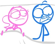 Pink wants to have sex with Blue but waits for him to make the 1st move.