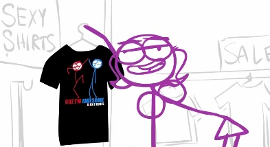 Stacy is a purple female stick figure with two pigtails. She has two eyelashes on each eye. She also has big boobs, which were revealed to be the world's most perfect boobs in the episode "Modern Flame War 3" and as clothing, she wears a skirt.